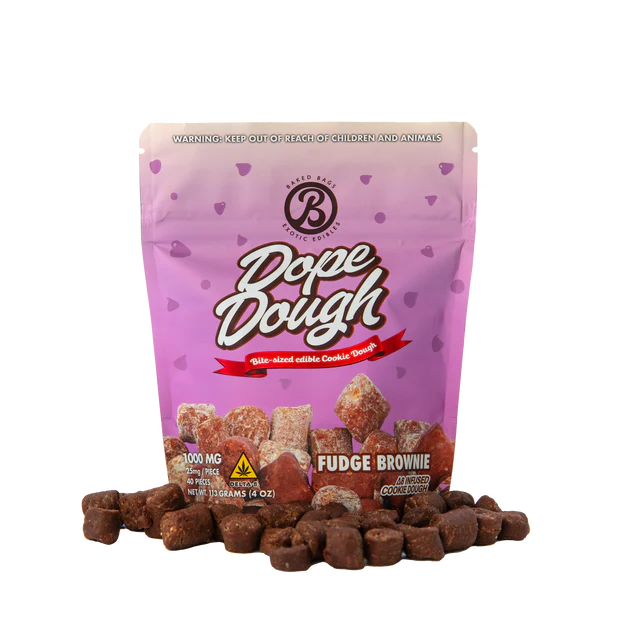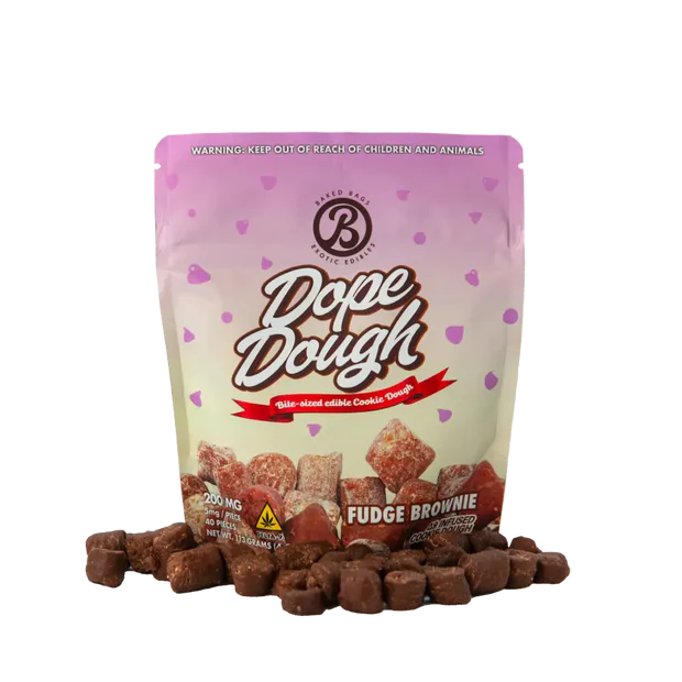 Indulge in Dope Dough – Fudge Brownie, a decadent treat that perfectly blends nostalgia and relaxation. Each bag contains 40 bite-sized pieces of irresistibly soft cookie dough packed with a smooth THC twist. Crafted by Baked Bags, a leading hemp edible brand, this product delivers a euphoric experience that lasts for hours. Designed for retail customers and wholesale buyers alike, Dope Dough elevates any cannabis edible lineup.